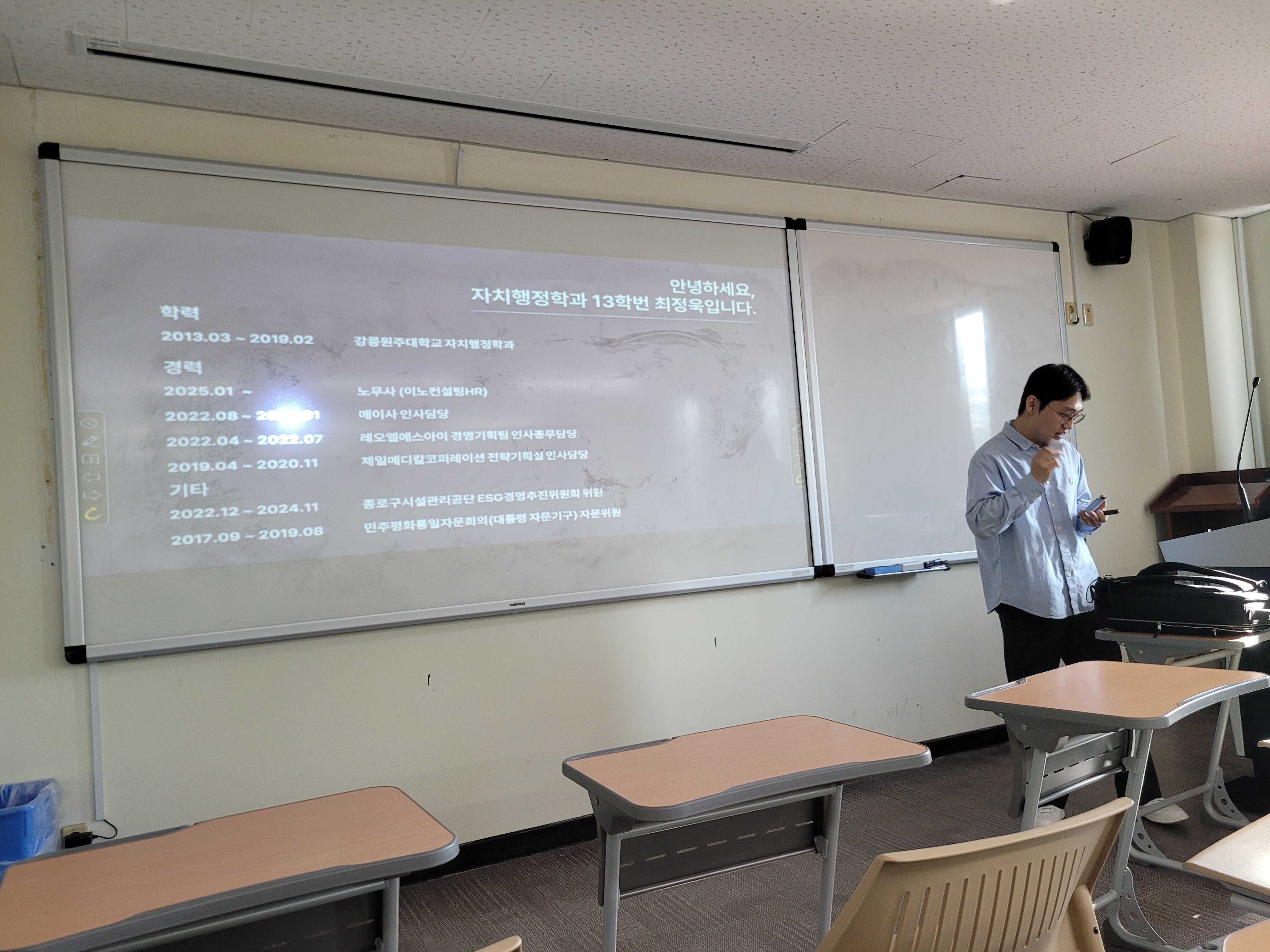 자치행정학과 13학번 졸업생 및 현재 노무사로 재직 중이신 최정욱 선생님께서,