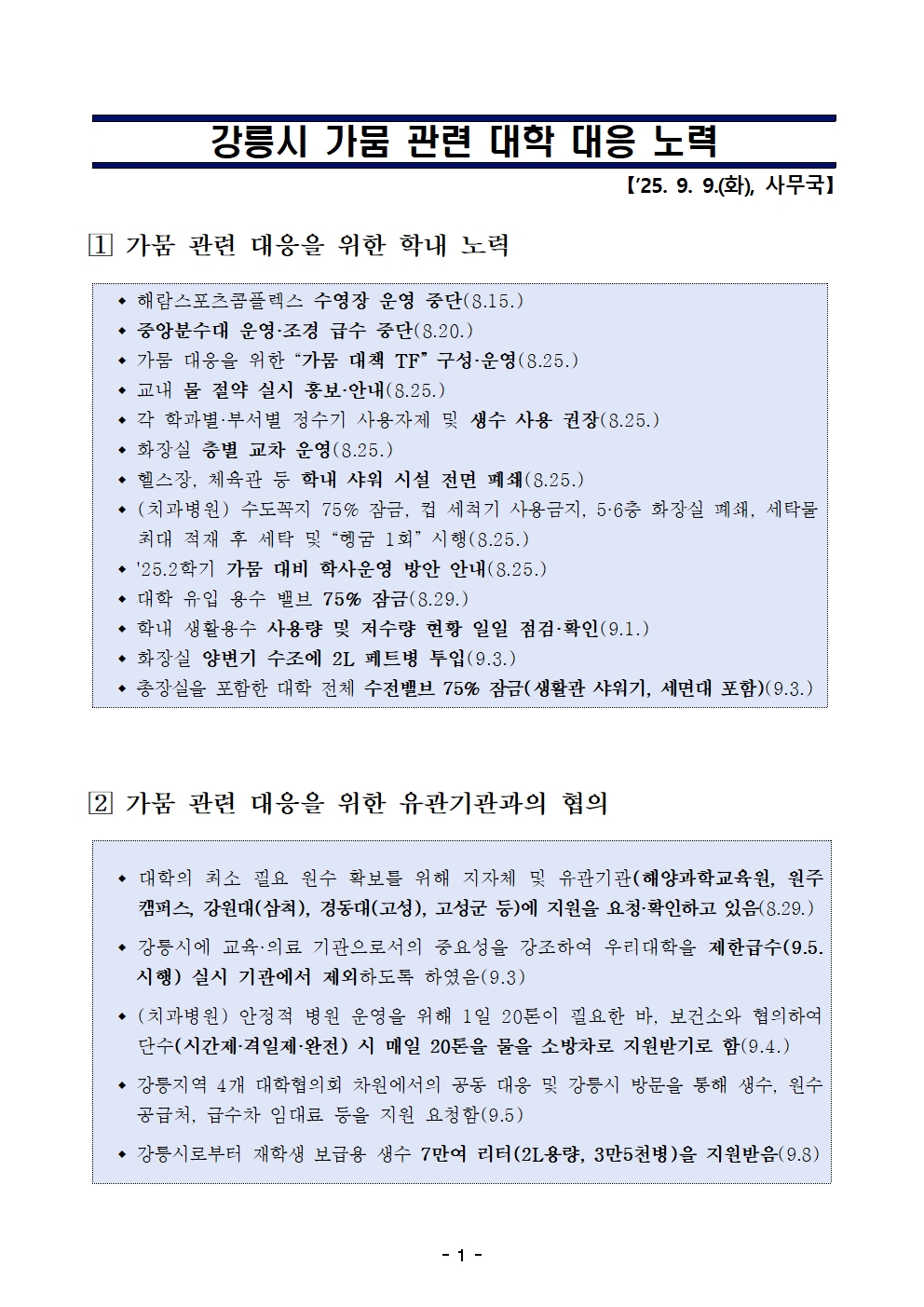 [기타안내] 가뭄 관련 대학 대응 노력(25.9.9.)