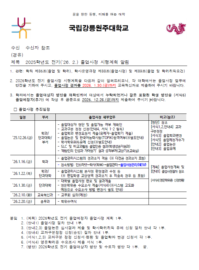 2025학년도 전기 졸업 대상자 중 융합전공, 및 융합부전공 이수자는 붙임 파일의