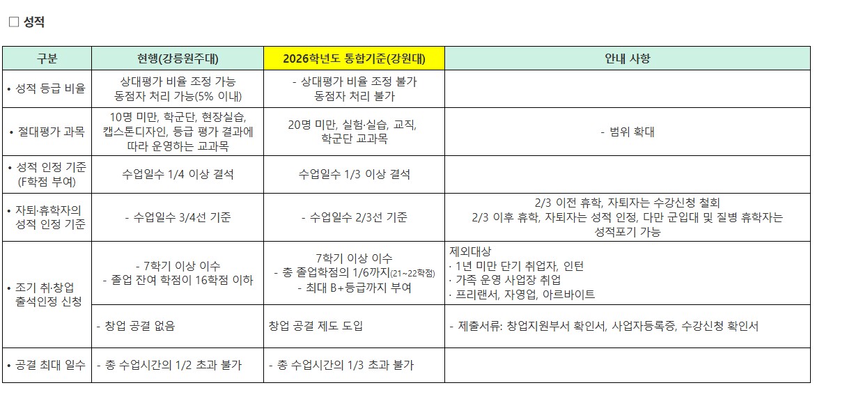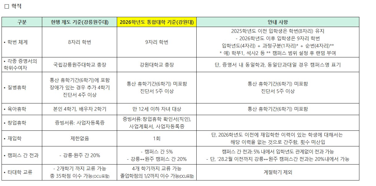 2026년 통합대학 교육과정 및 학사제도