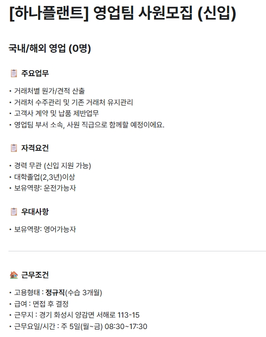 fnctId=bbs,fnctNo=1253 [하나플랜트] 영업팀 사원 모집(신입) 작성일 2025.10.28 작성자 최지은 조회수 536 **학과 졸업생이 많은 기업입니다. 관심 있는 학생은 연락주세요! 첨부파일 첨부파일이(가) 없습니다.